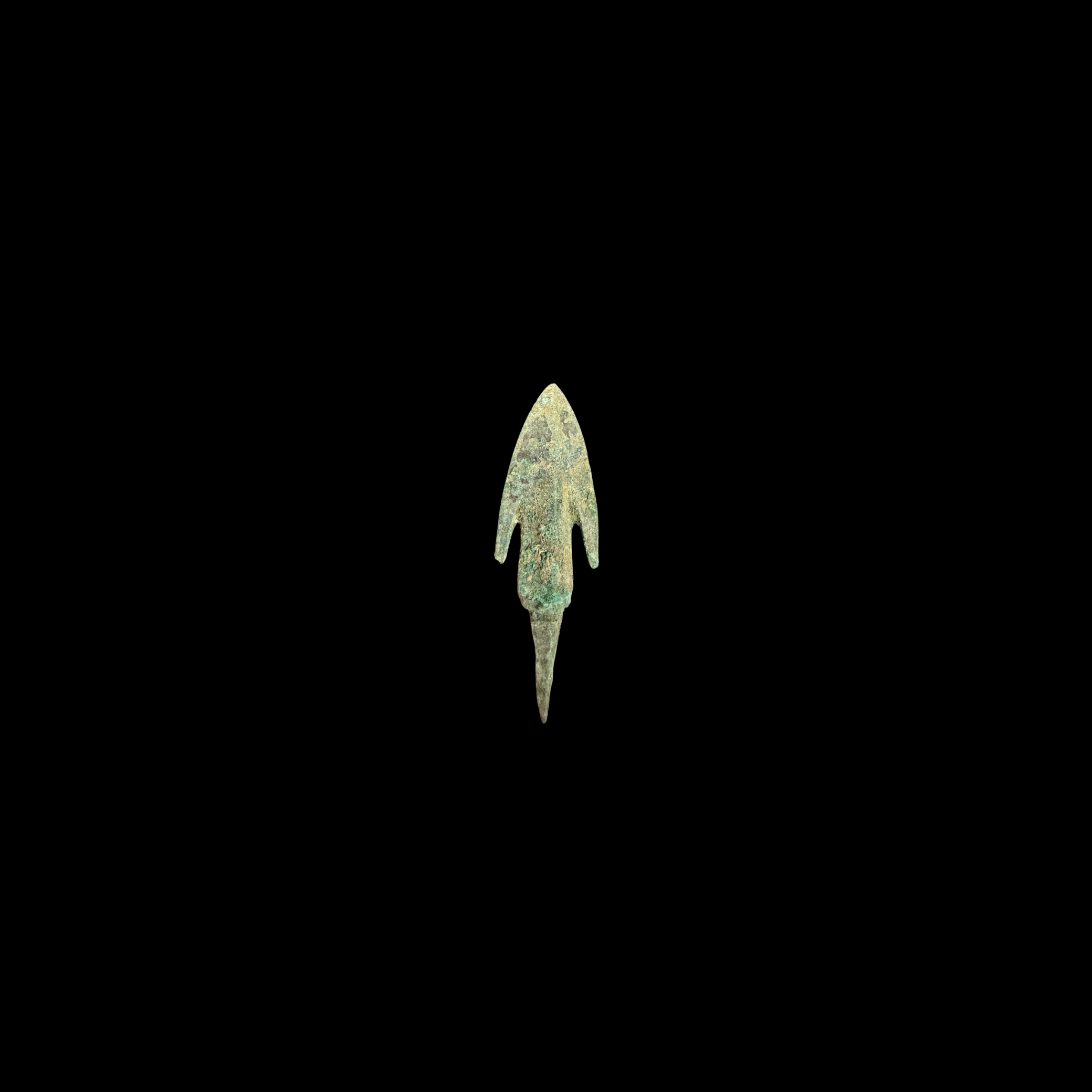 Crafted from bronze, these arrowheads reflect a long eastern Mediterranean tradition of bronze projectile weaponry that continued alongside iron examples during the Roman period. The barbed form increased effectiveness in combat, while the tang allowed secure attachment to a wooden shaft, making them practical and reliable weapons used by trained auxiliary archers serving Rome.