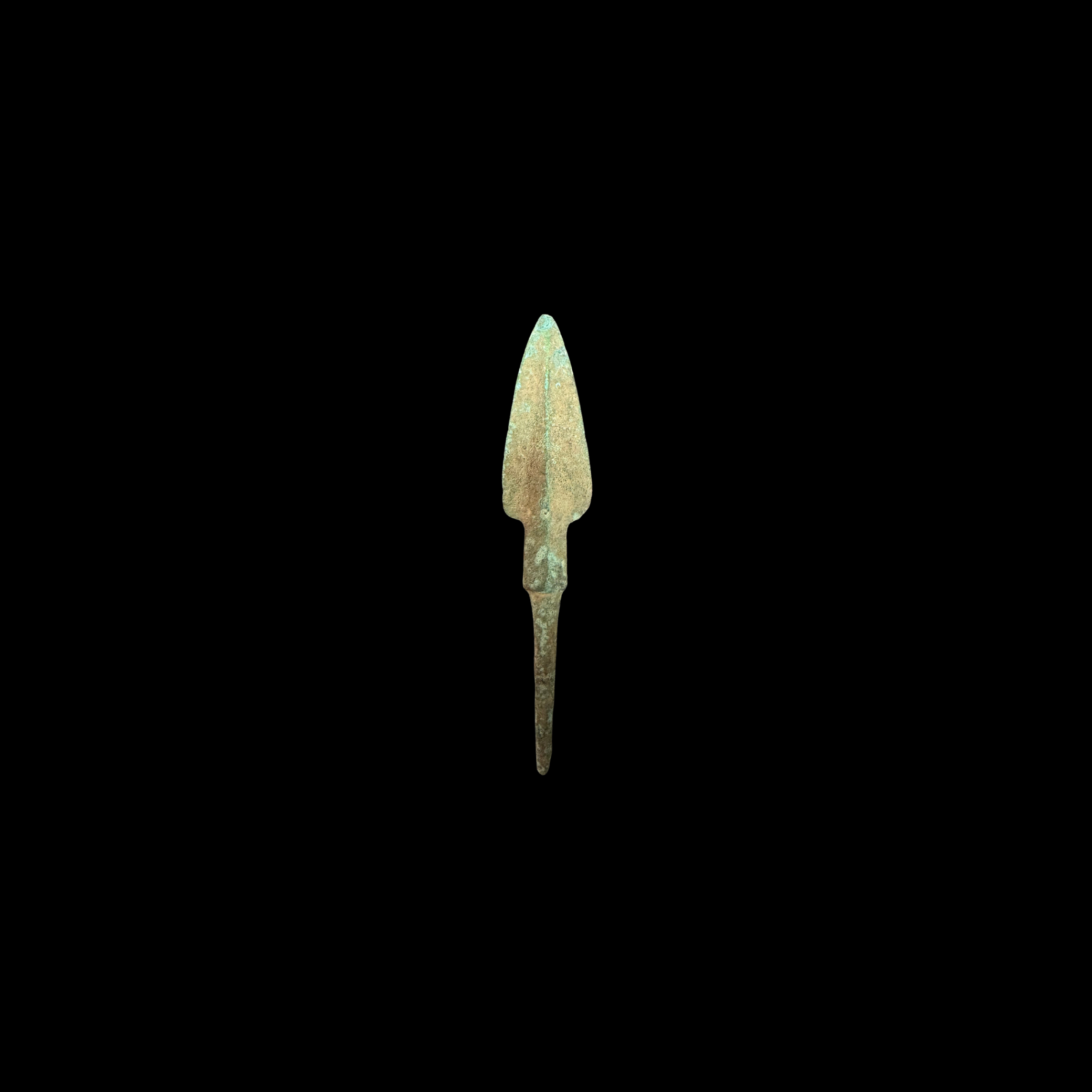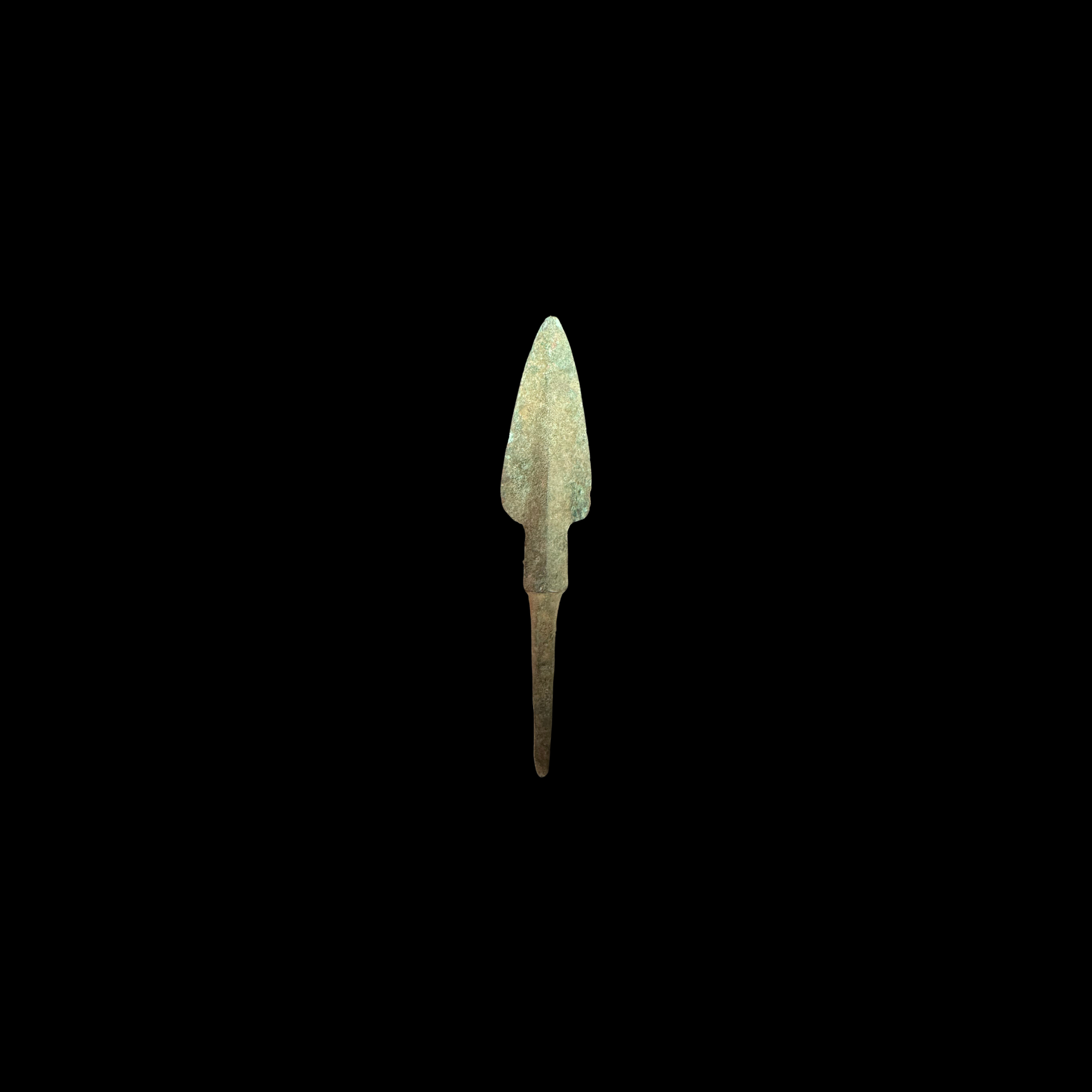 Bronze was widely used in antiquity for tools and weapons due to its durability and resistance to corrosion. Roman metalworkers typically produced pieces like this by casting molten bronze into molds, then hammering and sharpening the blade to achieve the final form. The long tang allowed the head to be securely fitted into a wooden shaft, creating a reliable and reusable projectile weapon.