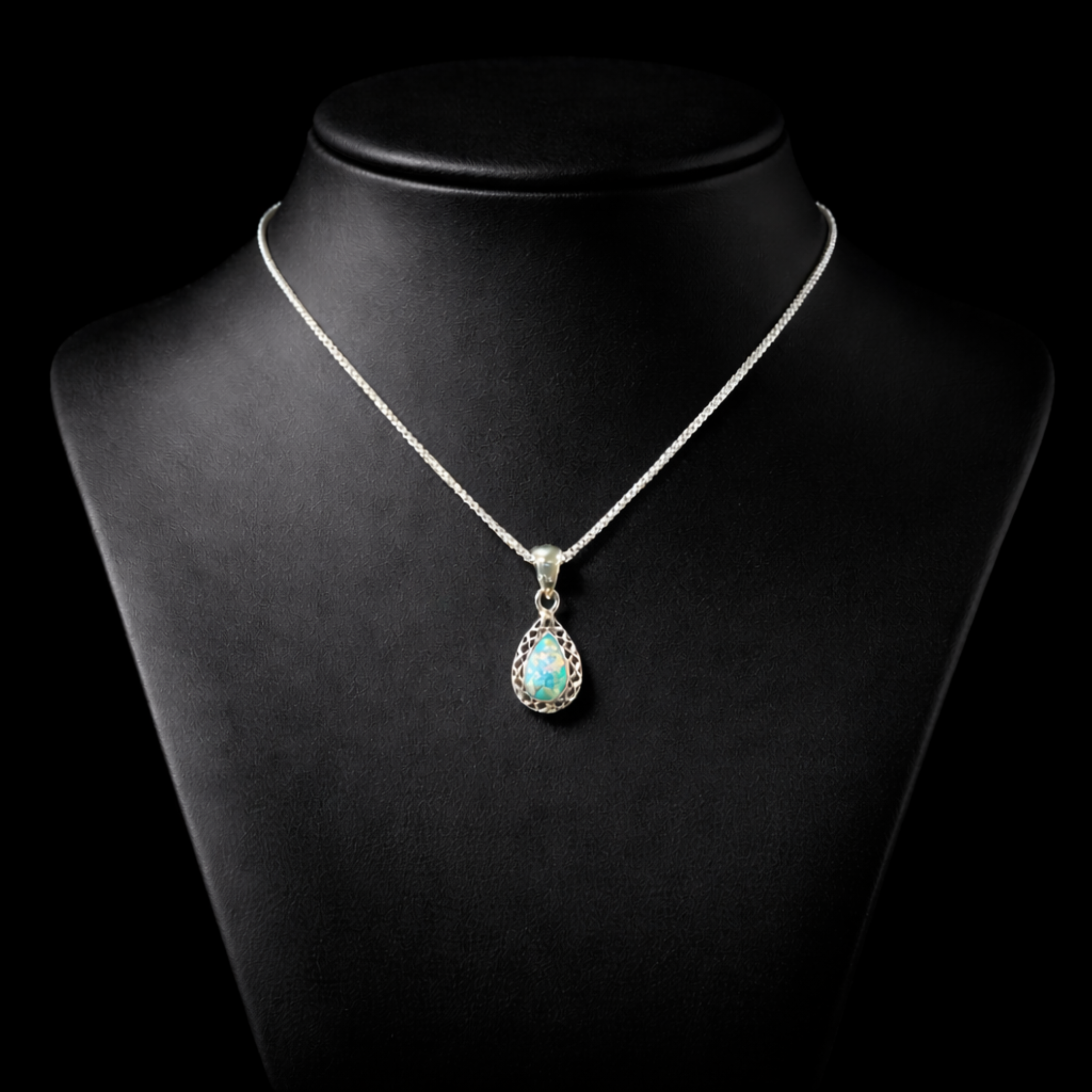 Sterling Silver Roman Glass Halo Teardrop Pendant – 2,000-Year-Old History