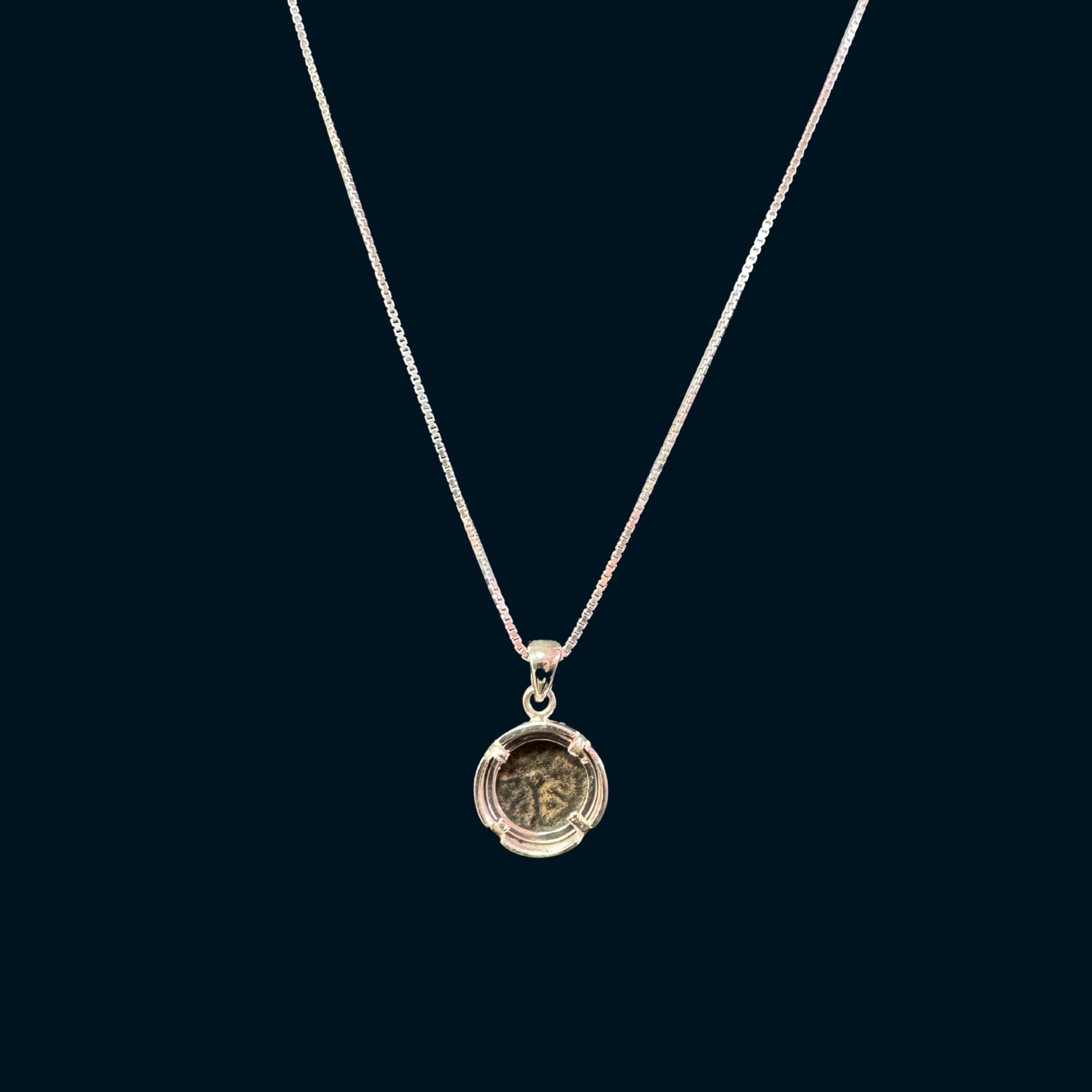 This stunning pendant features an authentic Widow’s Mite coin, one of the most iconic coins of biblical history. The coin is set in a solid 925 sterling silver bezel, designed to showcase its timeless beauty while preserving its historical significance. The Widow’s Mite was a small bronze coin minted during the reign of the Hasmonean kings (103–76 BCE) or the early Roman governors of Judaea (6–66 CE). It is famously referenced in the Bible (Mark 12:41-44), where Jesus praises the widow who gave her last two mites as a testament of true generosity.